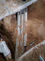 Working in a strip mall and concrete cutter made numerous cuts in the floor for the plumber to rough in 3 bathrooms. When all the concrete was removed it revealed 3 feeder conduits that had been cut through in multiple spots. Most were cross-cut and 2 were parallel cuts about 12" to 18" long. Two of the conduits were not energized but one was, and remained energized (the furthest one from the cuts, of course). I decided to cut open the top of the conduits to get a better look at the conductors and they were not damaged. I'll have to do this at each cut. I've used PVC repair kits before with good success but they're pricey and the conduits are packed close together with no way of spreading them apart. Any ideas? I know the only right way is to pull conductors out of all 3 to inspect them, replace all the PVC and re-install the wires. I thought I would see if anyone has been through this and what other options might be.