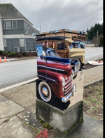 Today we use a custom pad mount panel, where the meter is inside behind a door that the POCO only can access. The customer panel is on the other side. in the customer panel we have lighting relays, GFCI and breakers for traffic signal cabinet and lighting. All our lighting was on a master PE. It makes for very clean installation, and each cabinet gets a graphic wrap that has anti graffiti film. This cabinet is in the auto center area.
