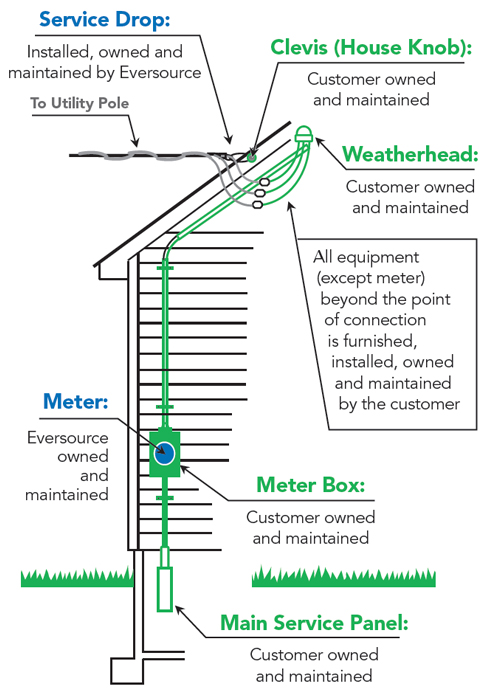 service entrance conductors/equipment. The Company shall provide, own, install, and maintain